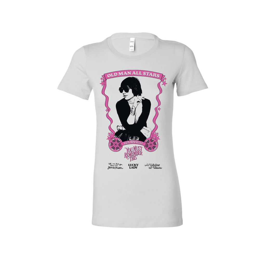 We polled members of the You Must Remember This Patreon on their favorite recurring stars of films featured in our series “The Old Man is Still Alive." The winner, Liza Minnelli, is featured on two limited edition t-shirts, one white and one black.