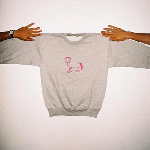 Horse with Bowl Cut Embroidered Crewneck Sweatshirt (Pink)